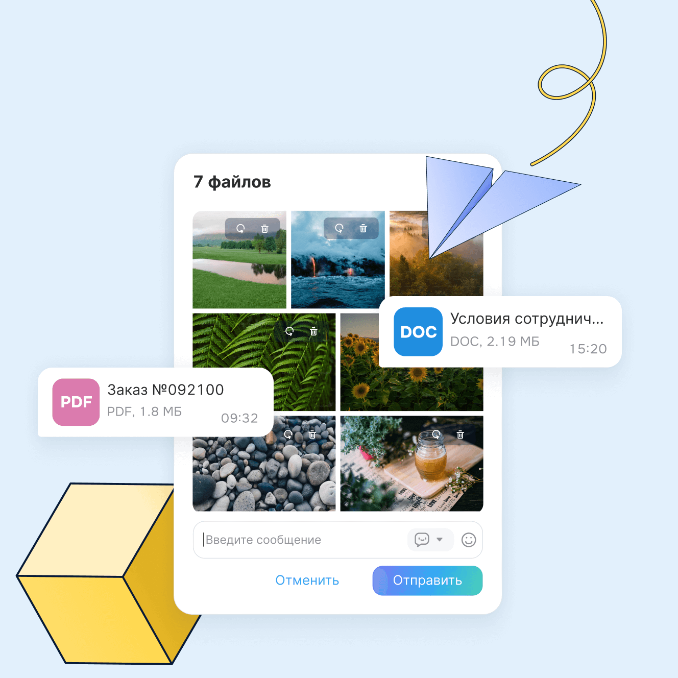 Пересылайте изображения, документы и видео — всё прямо в чат, без ограничений.
