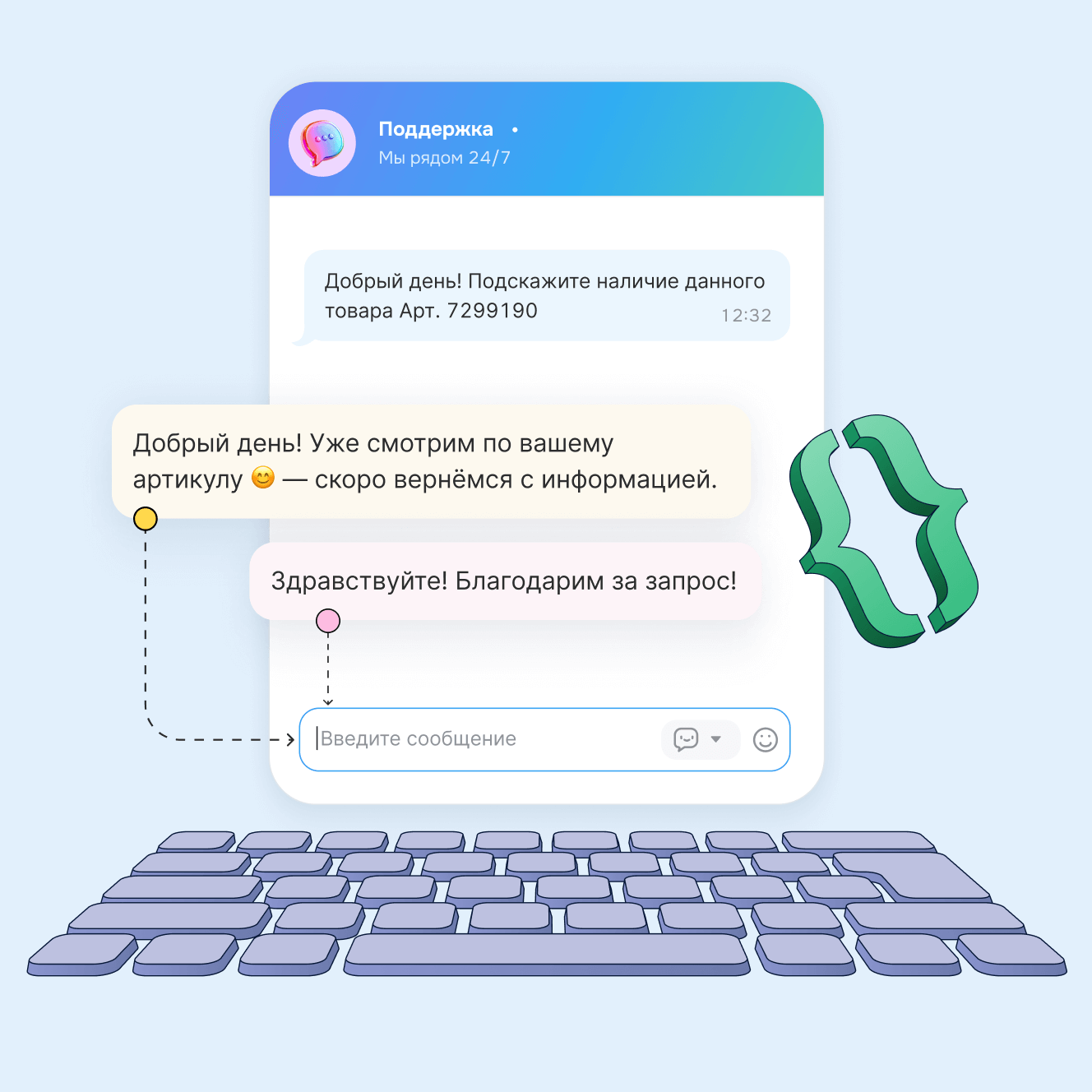 Используйте готовые фразы — быстрее отвечайте, меньше печатайте.