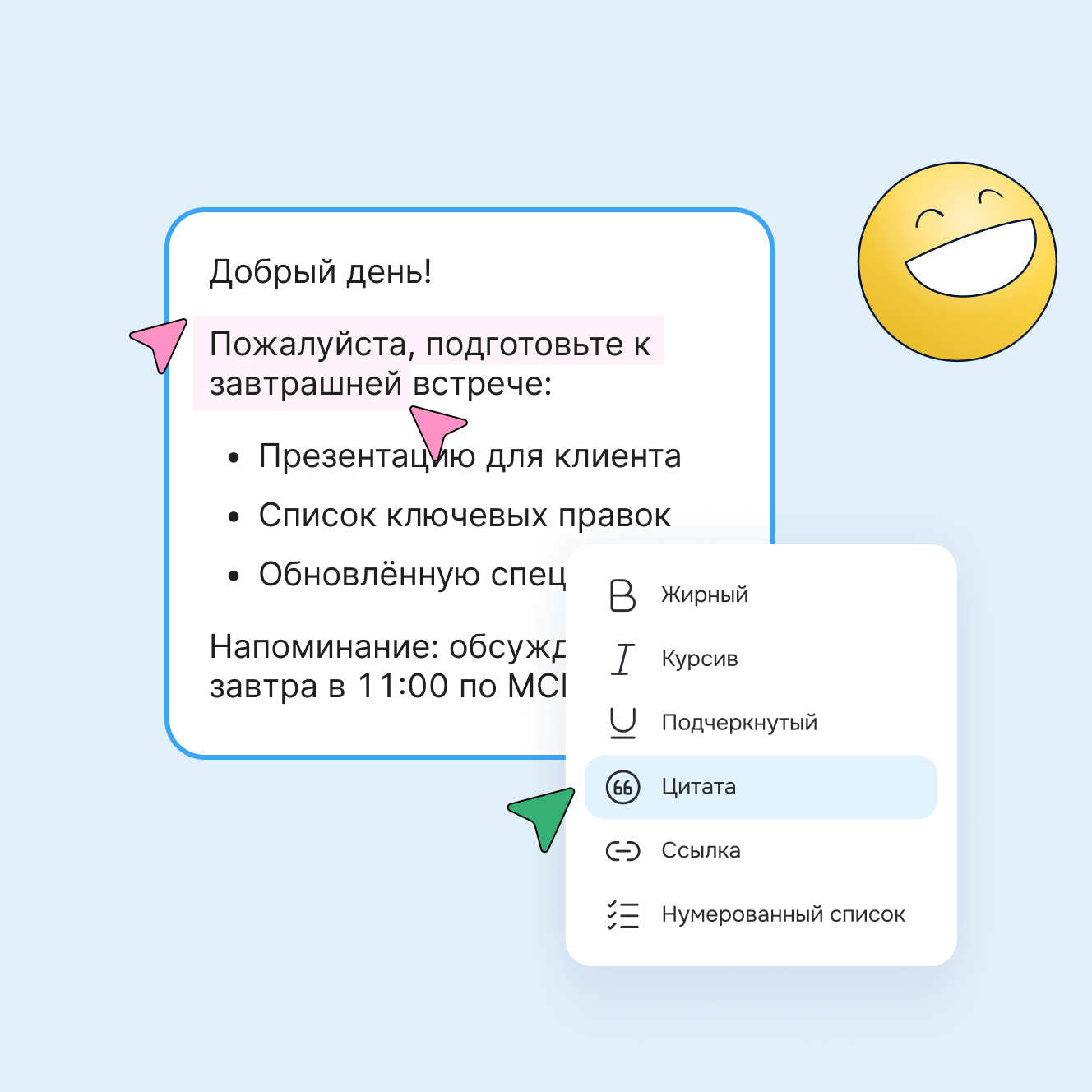 Делайте важные акценты, создавайте списки и добавляйте структурированные ответы.