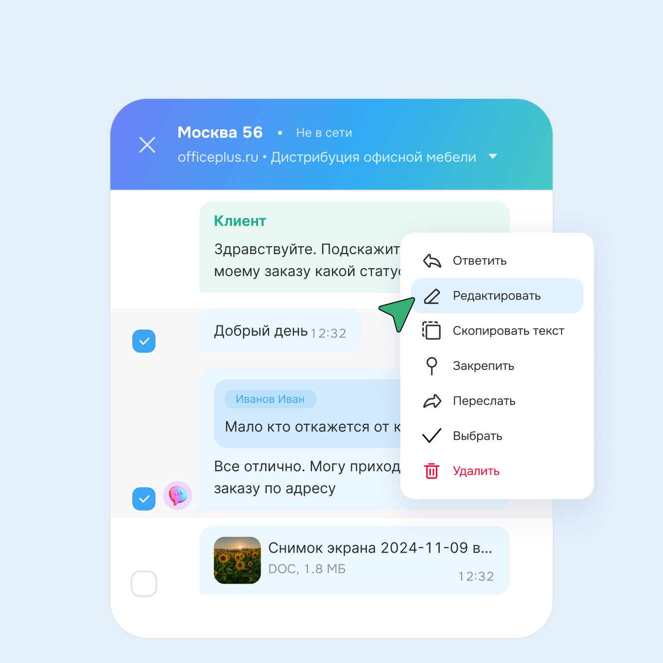 Редактируйте, удаляйте, цитируйте, закрепляйте и пересылайте сообщения в 1 клик.