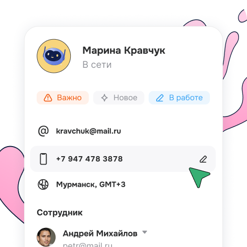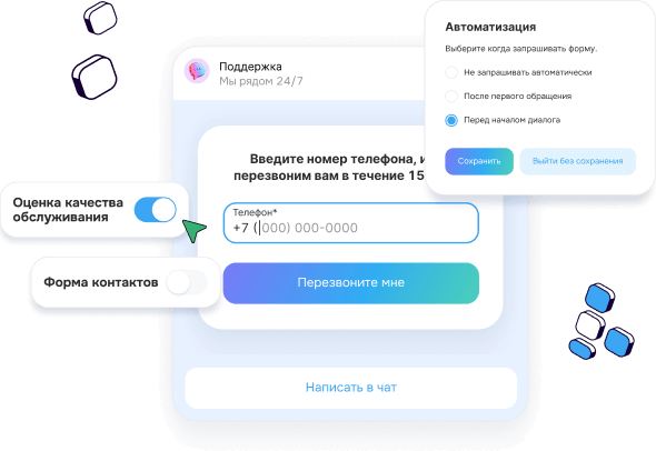 Настраиваемые автоответы при входе в чат, в нерабочее время или при отсутствии оператора. Приветствия могут быть персонализированными по UTM-меткам, гео или времени суток.