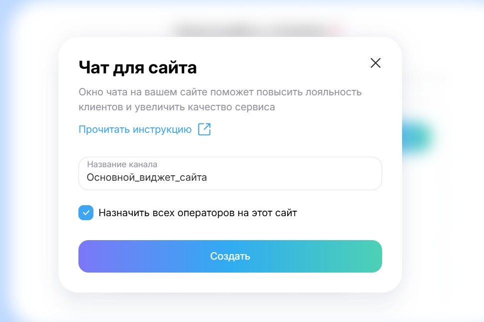 Дайте название каналу: например, «Основной виджет сайта». Это поможет ориентироваться, если позже вы создадите отдельные виджеты для разных лендингов.