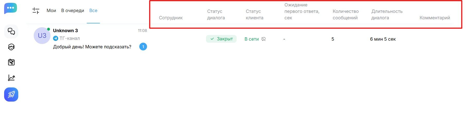 - Ожидание первого ответа (сек). Таймер, показывающий, сколько времени клиент ждет реакции. Держите этот показатель в зеленой зоне (до 60 сек).