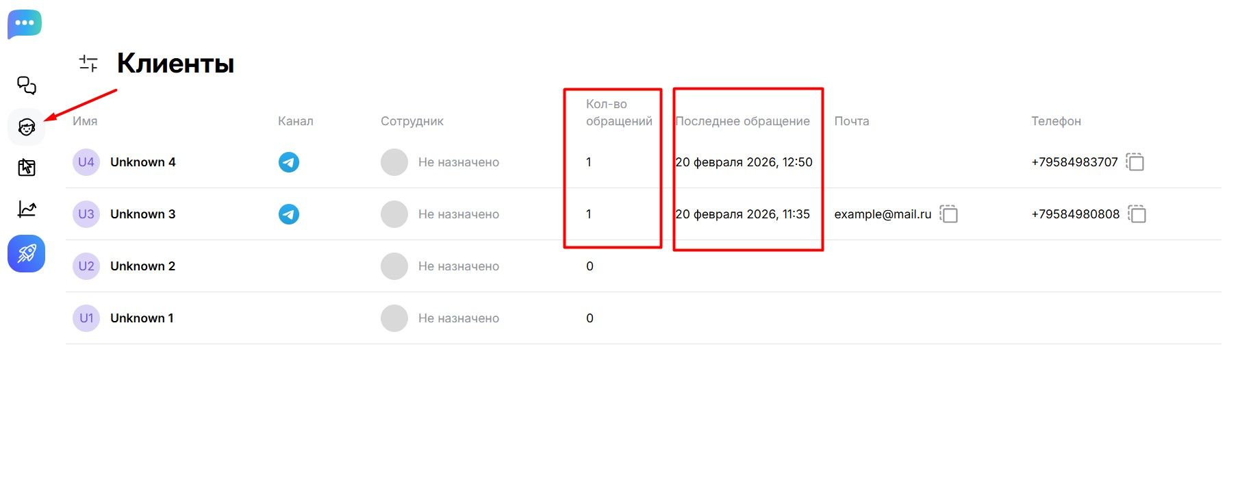 - Последнее обращение. Дата и время последней активности. Позволяет понять, как давно клиент выходил на связь и насколько актуален его прошлый запрос.
