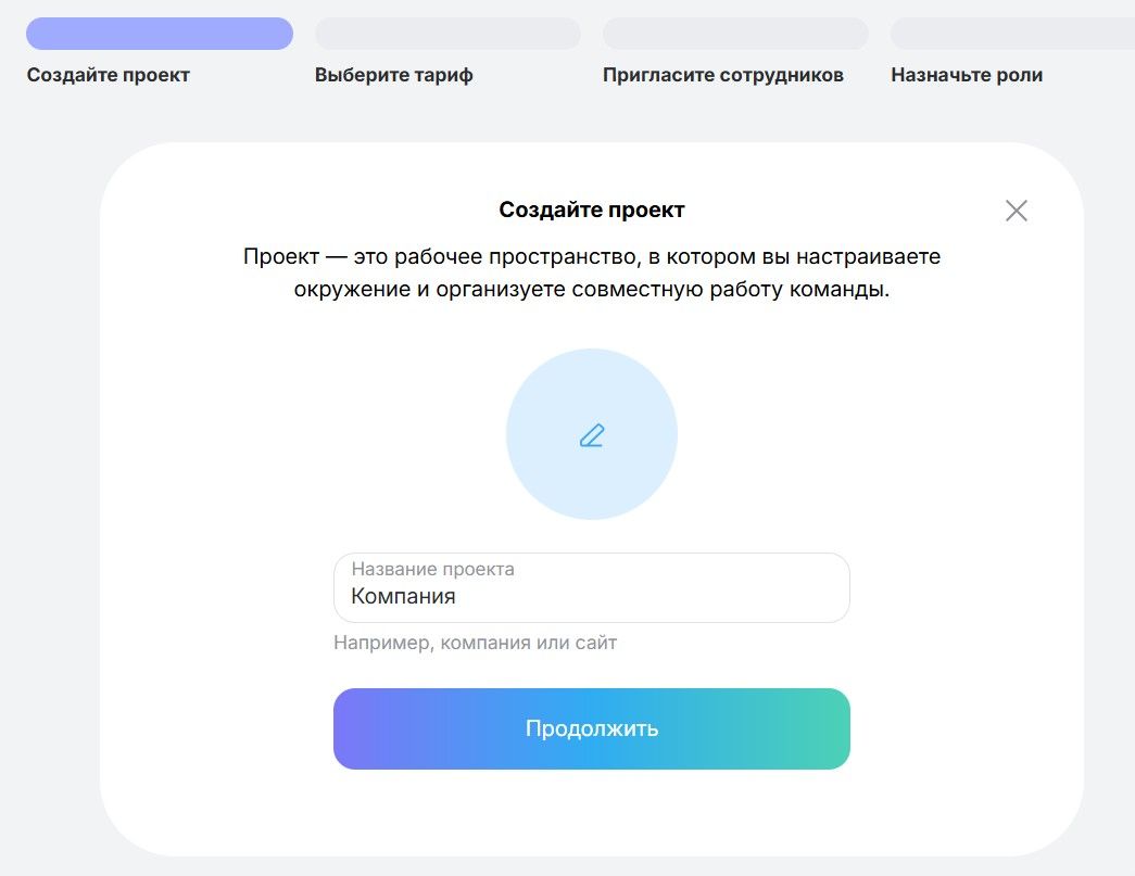 Первое, что увидят ваши сотрудники — это название проекта. Оно должно быть узнаваемым и понятным. В качестве названия лучше всего использовать название вашей компании (например, «Студия дизайна "Эстет"») или название конкретного сайта/продукта («Маркетплейс "Стиль"»).