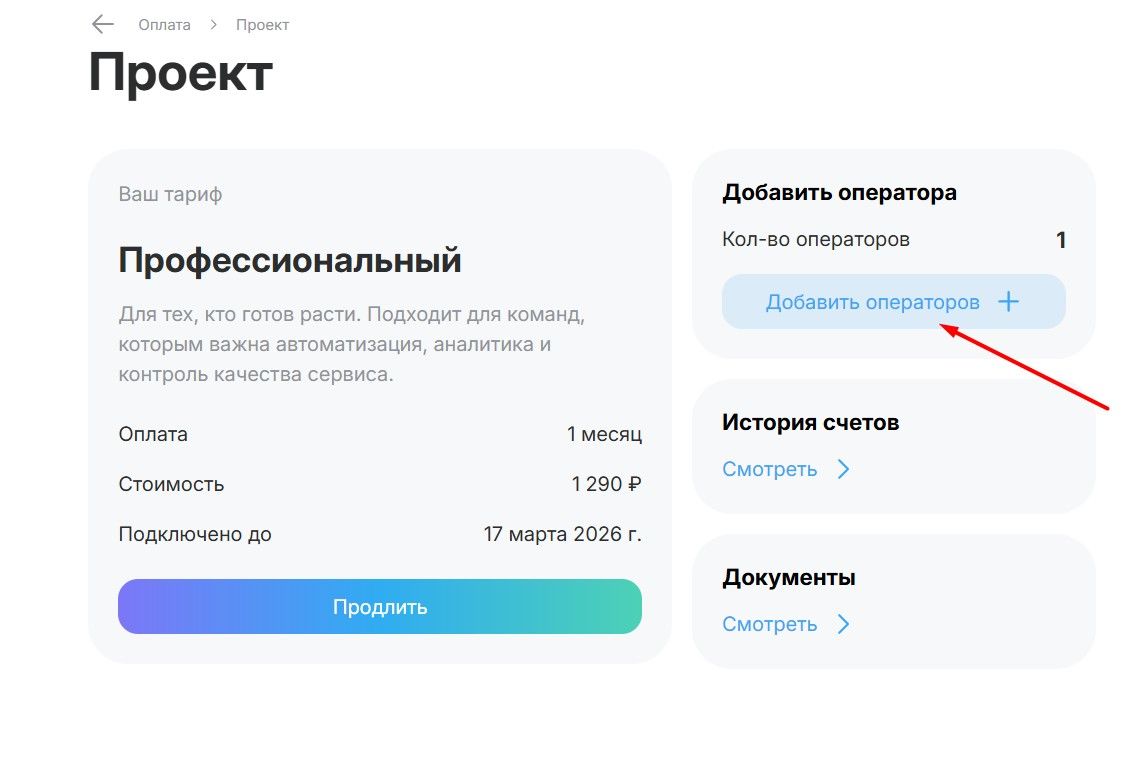 3. Если вы планируете добавить операторов к уже существующему платному тарифу, нажмите «Добавить операторов».