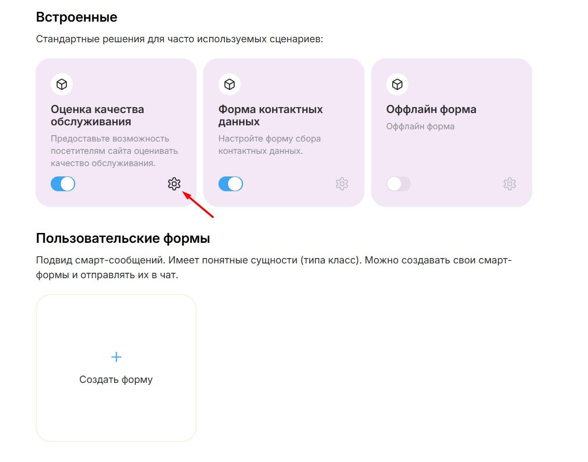 - Выберите в списке пункт «Оценка качества обслуживания» и нажмите на иконку настроек (шестерёнка).