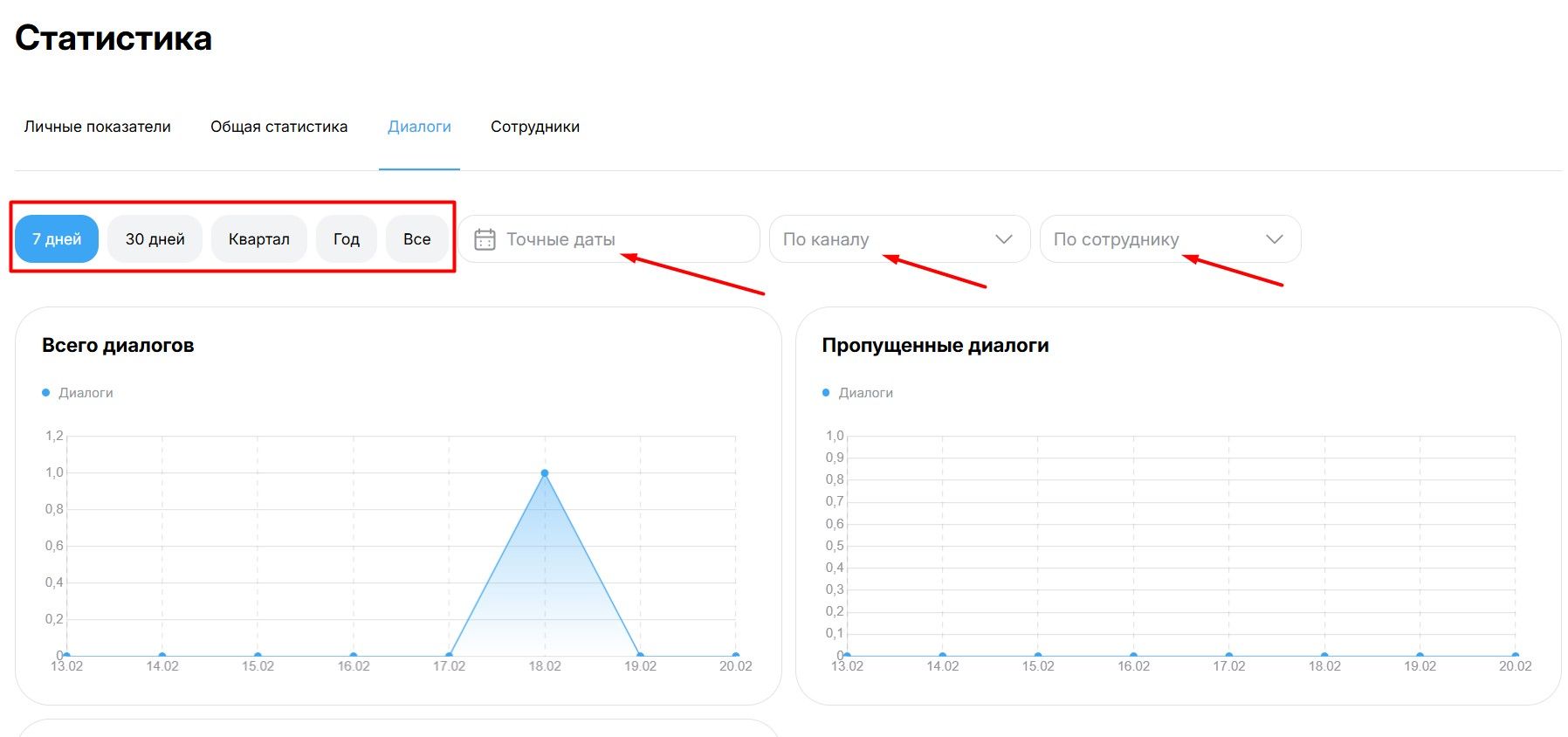 - Сравнивать периоды. Например, стали ли операторы пропускать меньше диалогов в этом месяце по сравнению с прошлым.