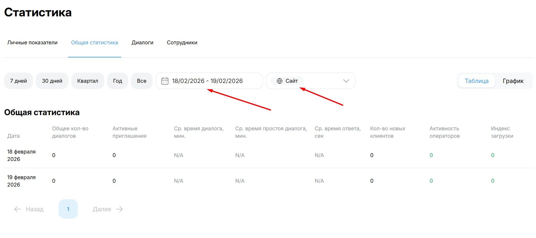- Ср. время диалога, мин. Средняя длительность беседы от первого сообщения до закрытия чата.