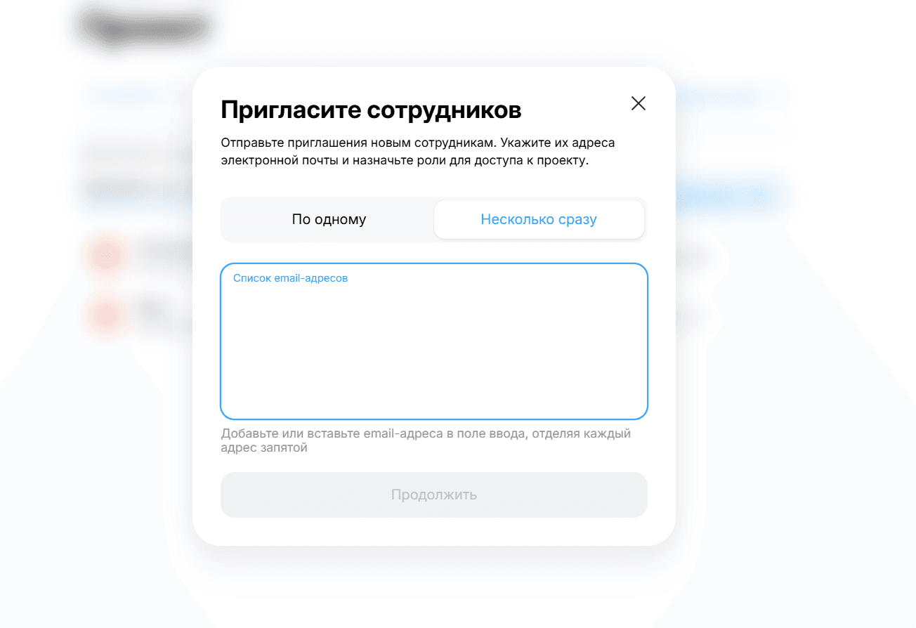 - Несколько сразу. Используйте этот режим для массового добавления команды (например, целого отдела поддержки).